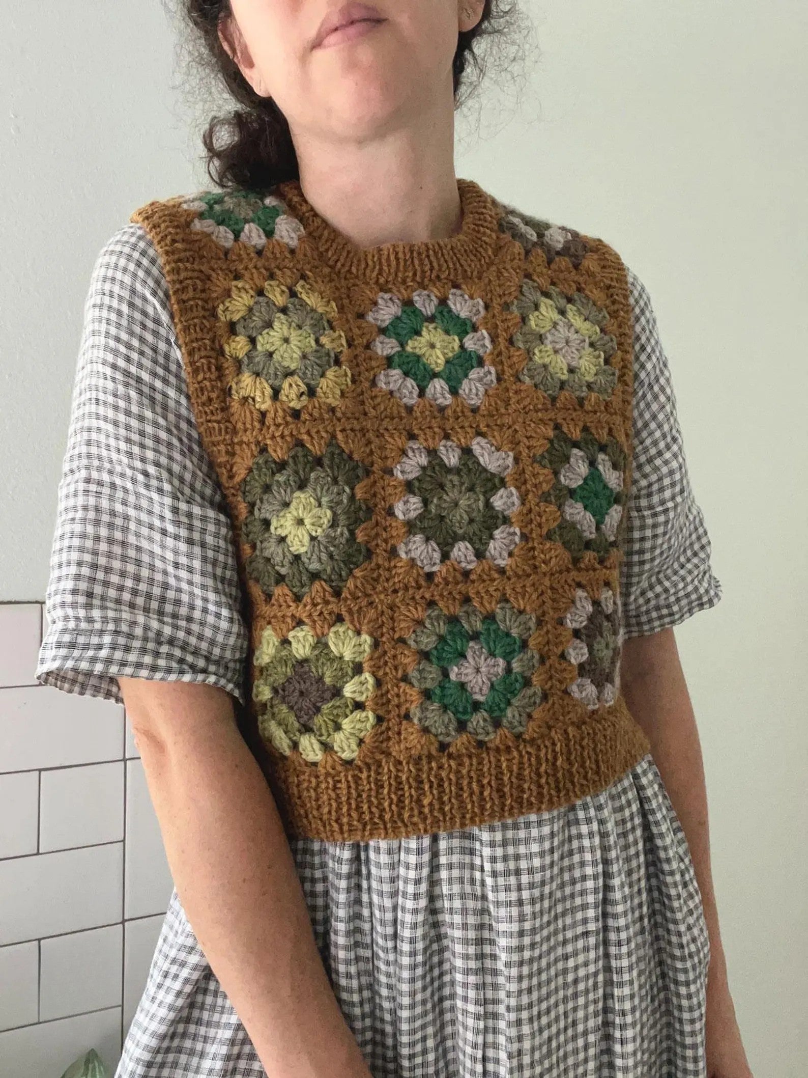 From first granny square to final ribbing, you’ll love every stitch of this pattern — and have a handmade vest you’ll be proud to wear.