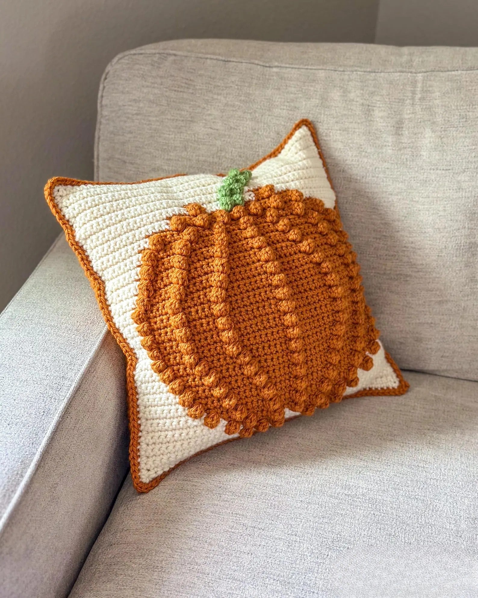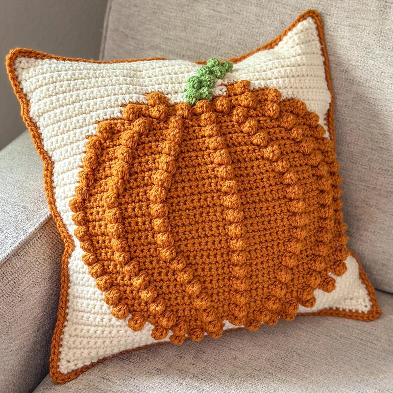 Bobble Stitch Pumpkin Pillow Crochet Pattern