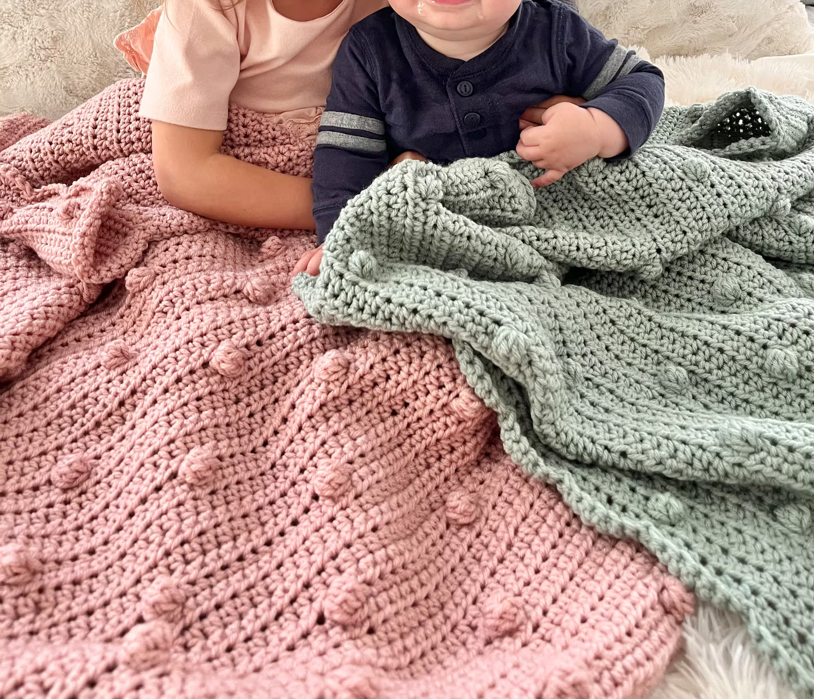 This crochet pattern combines cozy bobble textures with a simple, elegant design — perfect for making a blanket that will be cherished for years. 🧵✨