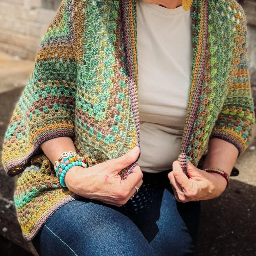 Built from one bold granny square, this pattern transforms simple stitches into a cozy, free-spirited wrap that flows beautifully with any outfit.