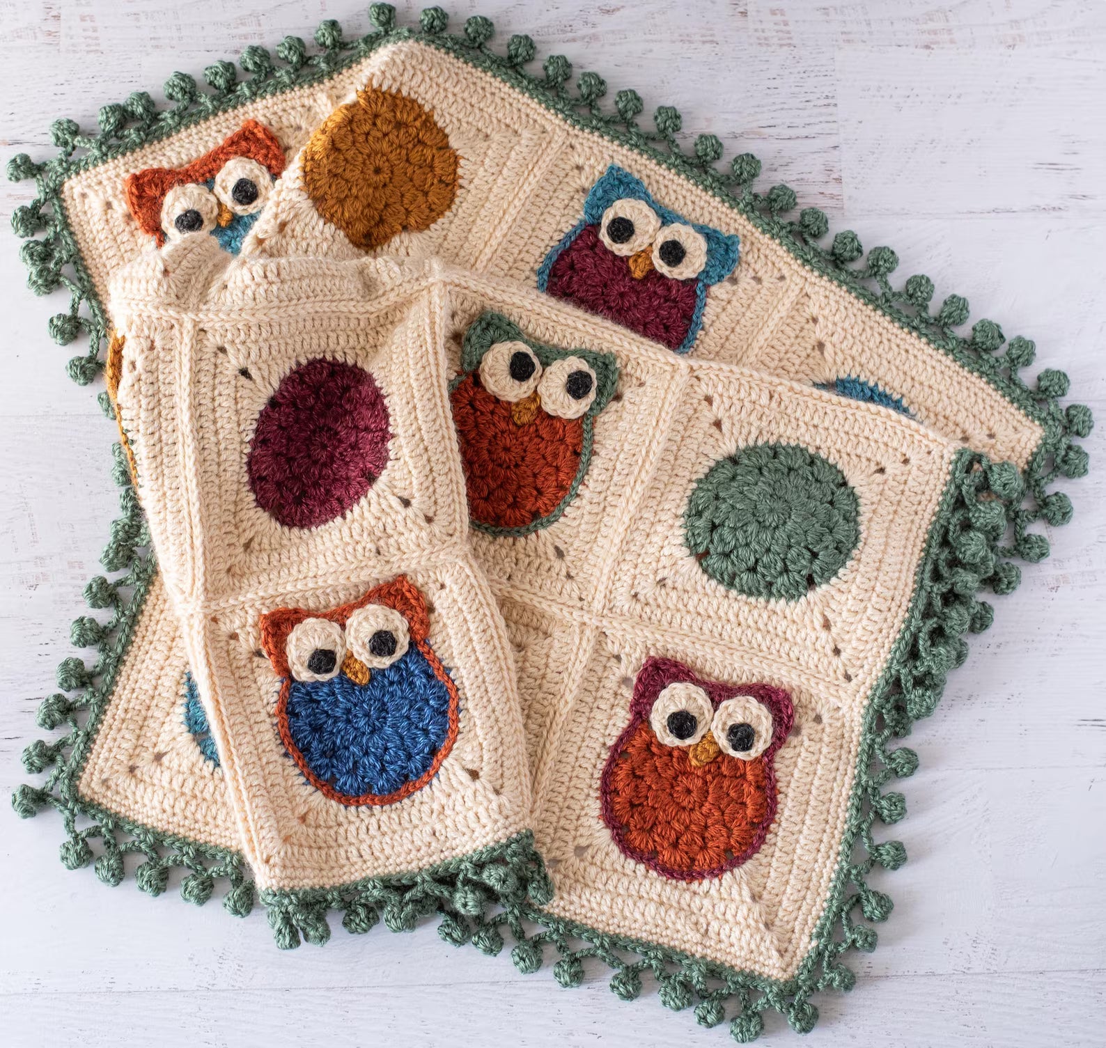 Little Hoot Owl Granny Square Blanket Crochet Pattern