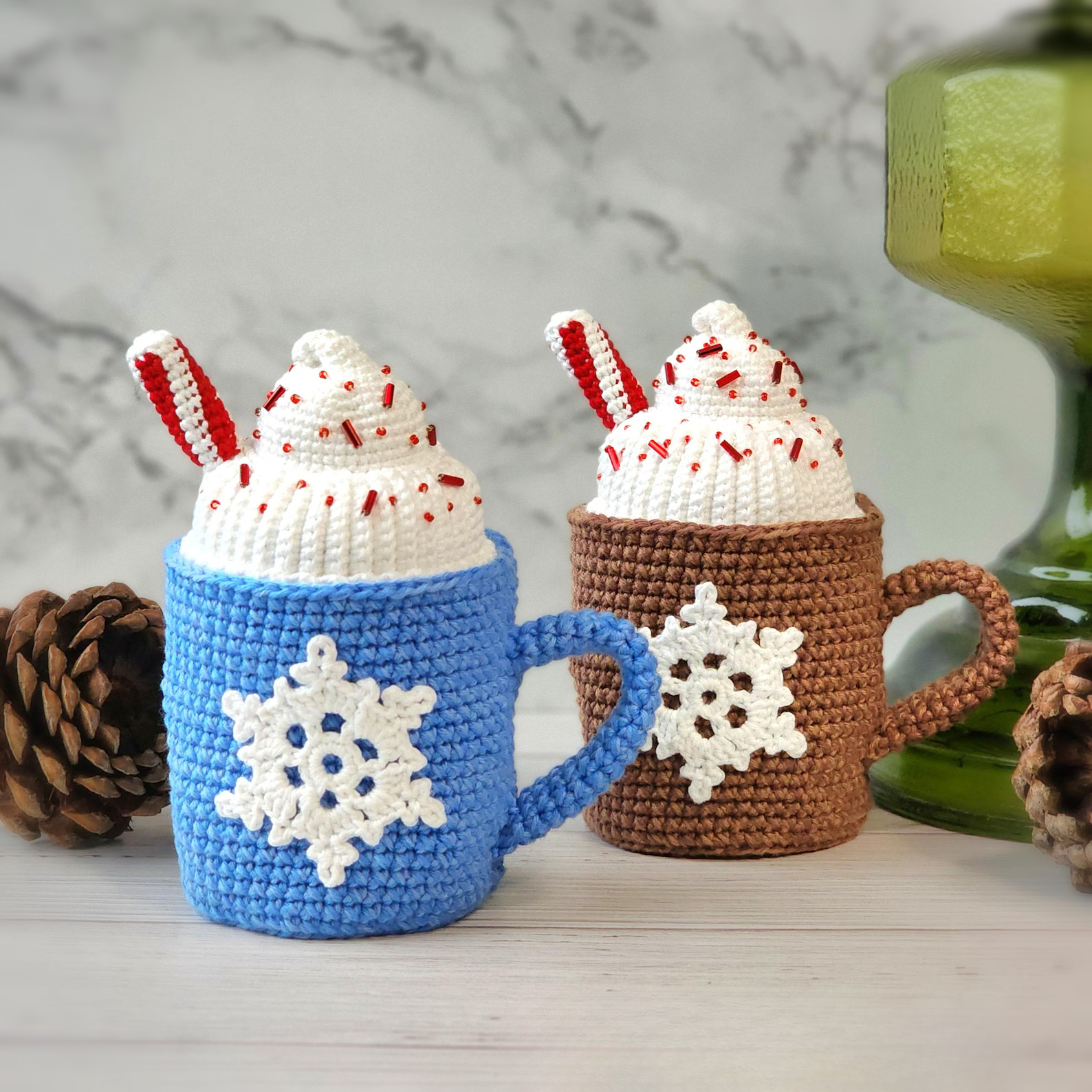 A heart–melting amigurumi design that lets you create an adorable little doll nestled inside a festive coffee mug.