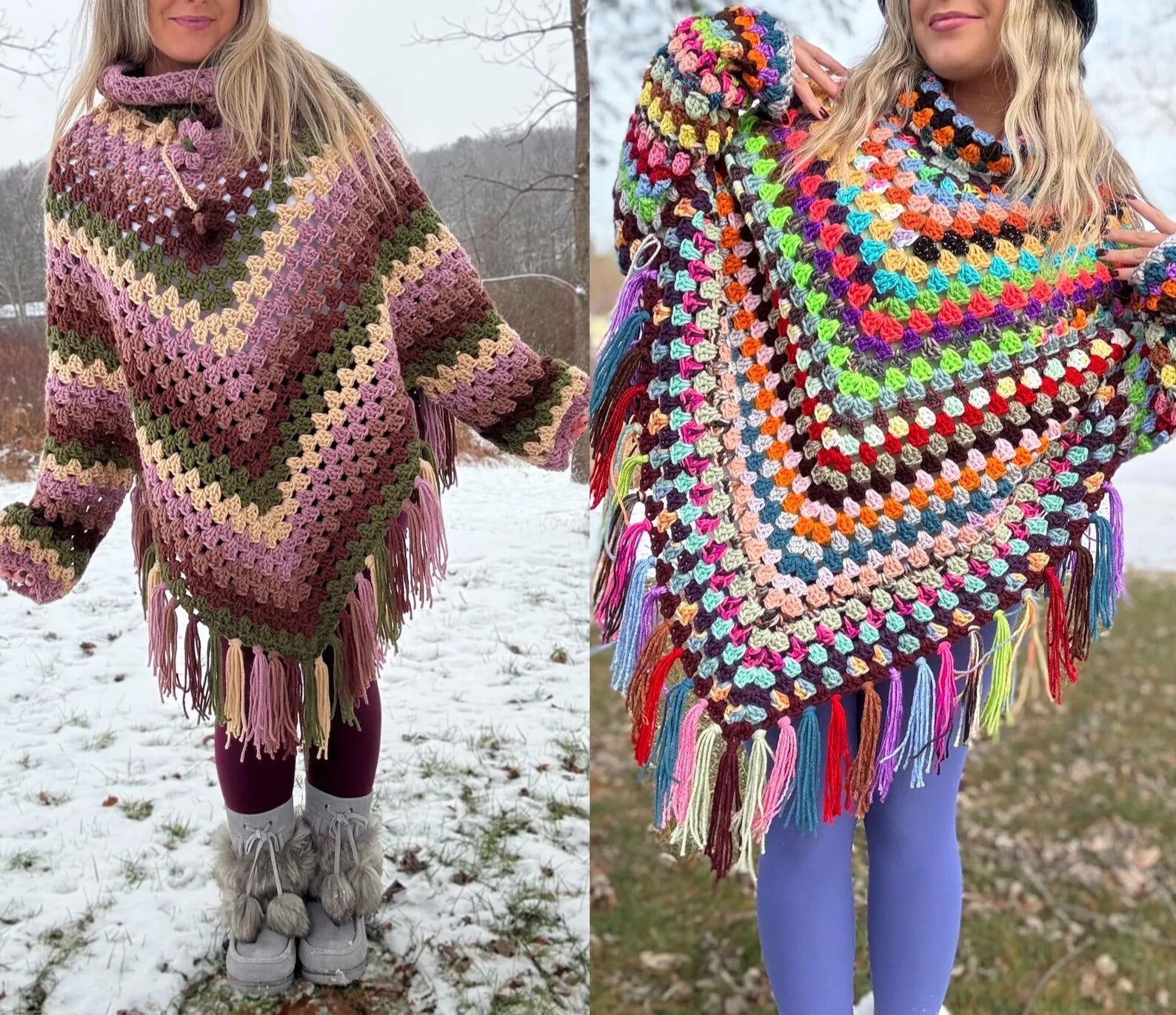 This poncho sweater reminds you that the coziest pieces aren’t bought, they’re made stitch by stitch, with creativity and care.