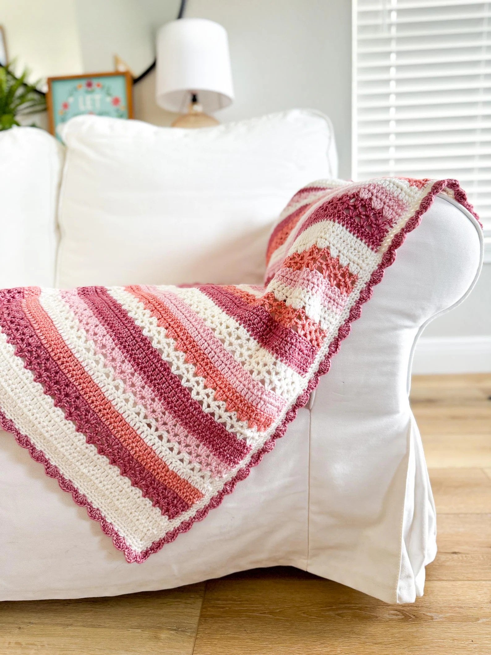 Raspberry Lattice Striped Crochet Blanket Pattern